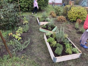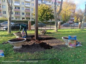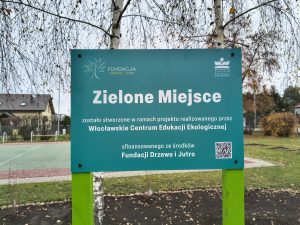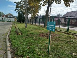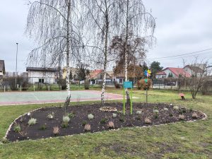 Prezentujemy Zielone zakątki utworzone w 2025roku. Nagrodę, czyli tablicę informacyjną i sadzonki roślin ufundowała Fundacja Drzewo i Jutro.
