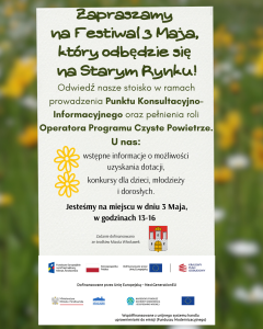 Odwiedź nasze stoisko w ramach prowadzenia Punktu Konsultacyjno-Informacyjnego oraz pełnienia roli Operatora Programu Czyste Powietrze.